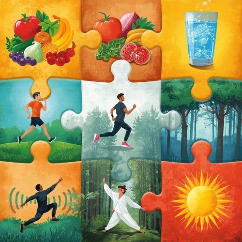 Auch die geistige Gesundheit ist ein wichtiger Faktor, genauso wie eine entsprechende Bewegung, besonders an frischer Luft. Unser Bewegungsapparat heißt ja auch nicht "Sitzapparat". Dadurch wird unsere Durchblutung, als wesentlicher Bestandteil für die Zellversorgung, angeregt.